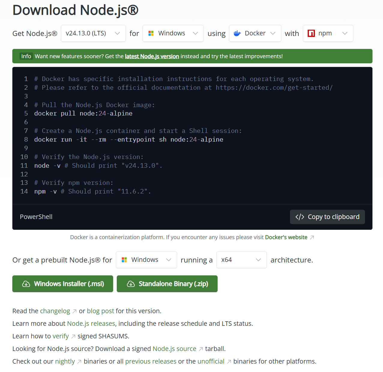 각자의 운영체제에 맞게 먼저 20 이상의 node.js를 설치하자.