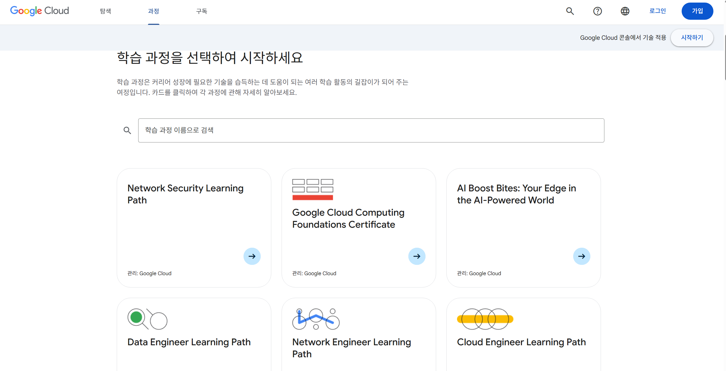 https://cloud.google.com/learn?hl=ko#learn-by-role
