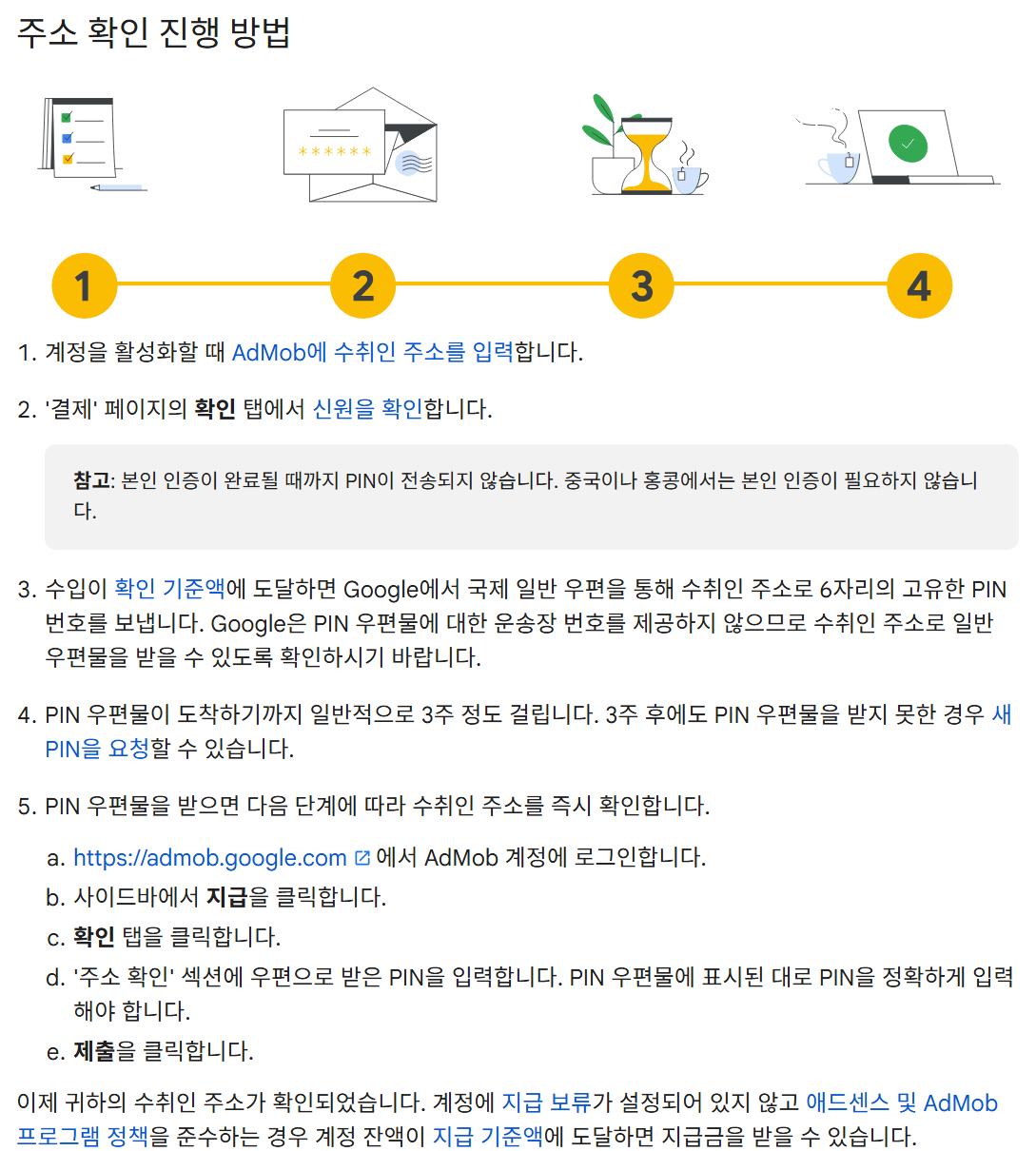 주소 확인(PIN) 개요 - Google AdMob 고객센터