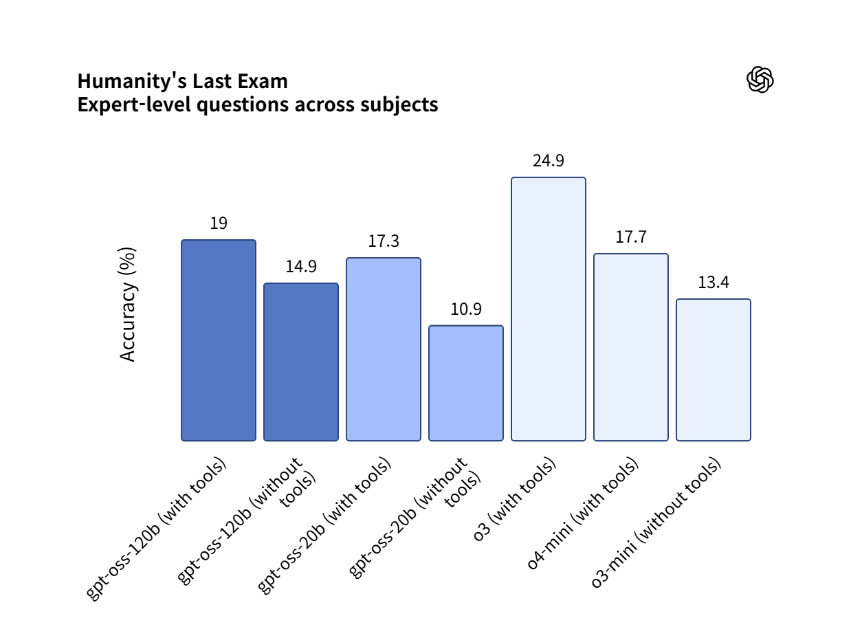 간단하게 말하자면 도구를 연동했을 경우 의료와 수학 쪽에서는 120b 모델이 o3 모델보다 조금 부족하다. 그리고 20b 모델은 의료에서는 o3 mini 모델보다 상당히 좋고 수학 쪽에서는 o3보다 살짝 좋은 수준이다.